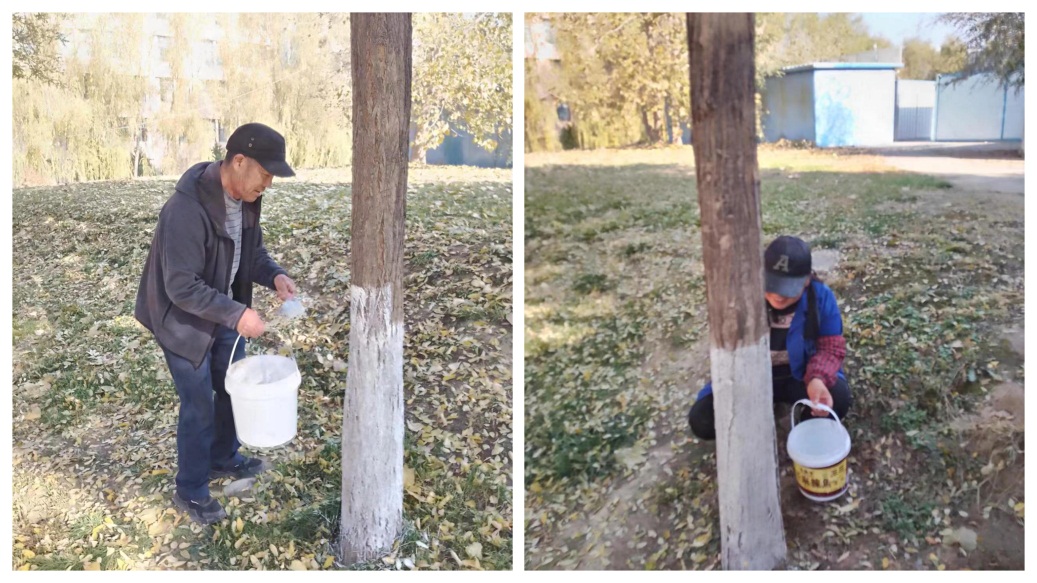 为做好绿化树木的养护管理,工作人员按照石灰、农药等配比,给绿化树木树干刷上一层涂白剂,并对每棵树木标定基准线和标准高度,采取挂线刷白的方式,有效做到止口平整、高度一致、浓度、白度均匀,让树木穿上了防虫杀菌保暖“防护服”,切实提高了树木抗病、抗寒和抗风能力,降低冬季树木病虫害的发生率。