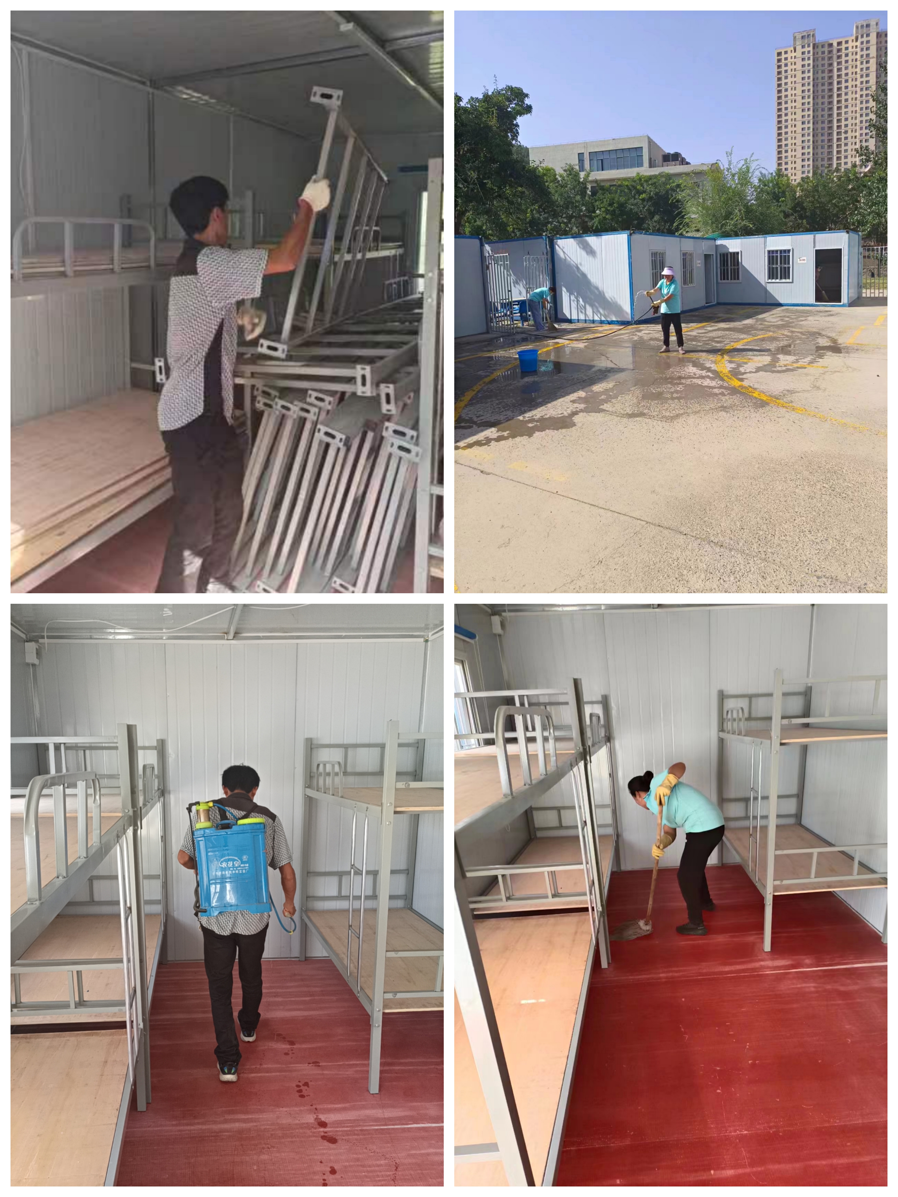 为做好此次军训教官的住宿服务工作,后勤处保洁监管中心多次与相关负责人就入住时间、服务需求等进行沟通交流。提前准备好教官寝室,安排工作人员进行卫生清扫、消杀、床铺安装、卧具铺放、物品检查等工作,确保各种设施的使用完好,用扎实工作落实后勤处对军训工作的高标准、严要求,把后勤处对军训工作的要求贯彻到每一个细节,力求为教官们提供一个温馨、舒适的住宿环境。军训期间,后勤处将每天安排员工打扫宿舍卫生,发放日常生活物品,满足教官日常生活需求,保证教官住的舒心、安心、放心。