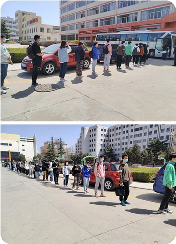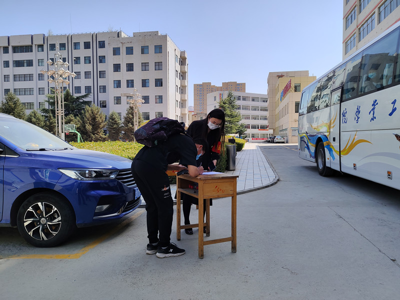 校团委安排志愿者,在浴池点和发车点配合党员先锋岗维护现场秩序,并测量体温和核验健康码及洗澡人员乘车信息登记工作。