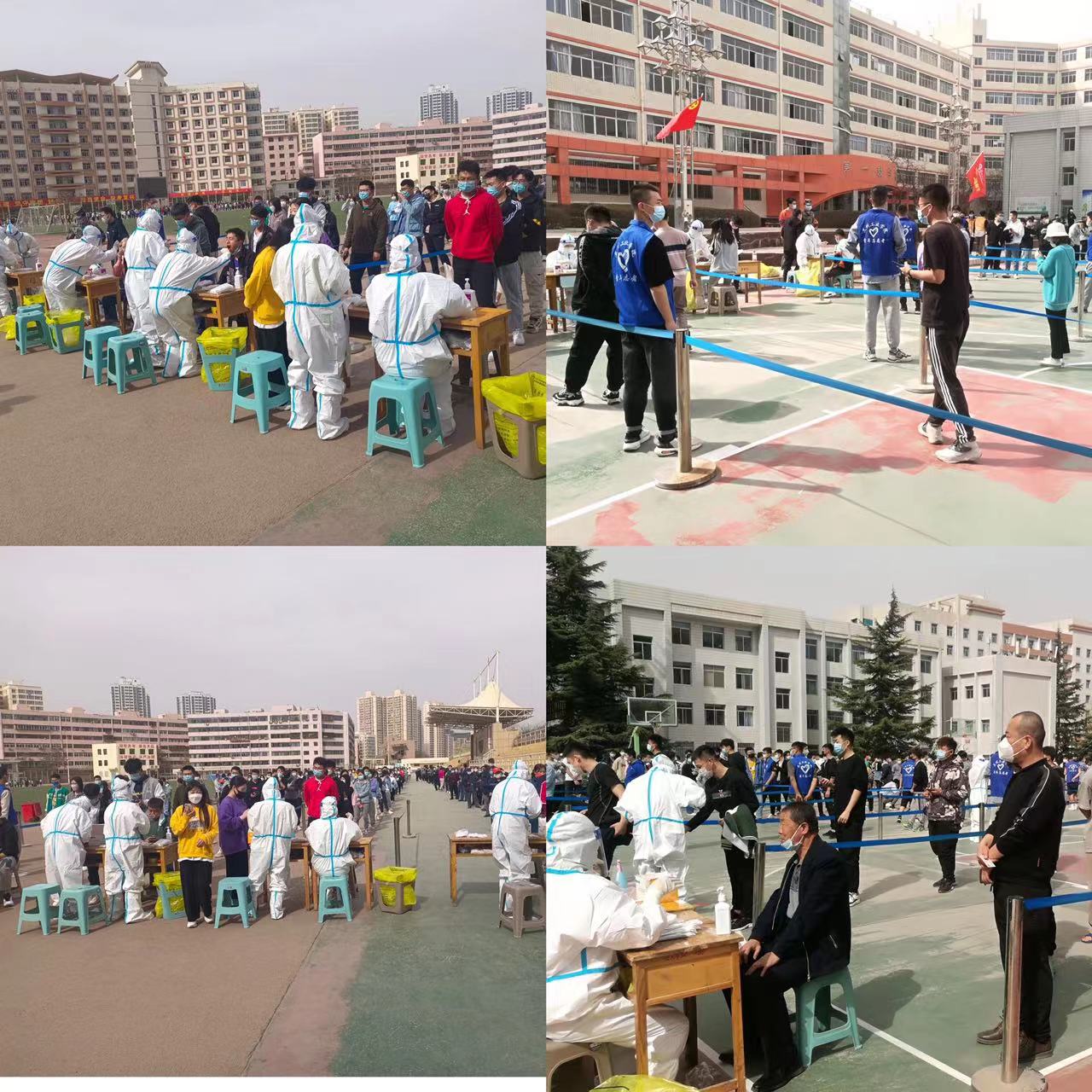 接下来与相关单位协商来校做核酸检测时间,并提前做好《春季学期第一轮全员核酸检测安排表》,通知全校师生下午三点,准时在南北两校区开展全员核酸检测工作。采集点分别设置在通风良好、场地宽阔的篮球场、足球场,设置等候区、采集区、缓冲区和取样区。根据提前统计好的人数,现场分设4个学生通道和1个教职工通道,现场师生根据志愿者引导,保持一米间距,规范佩戴好口罩,有序开展核酸检测工作。我们与团委密切配合,全程灵活组织协调,医务人员身着防护服,戴护目镜,精准采集咽拭子。一直持续到晚上9点多,第一轮全员核酸检测工作终于顺利完成。本次共完成10666人次采集工作。