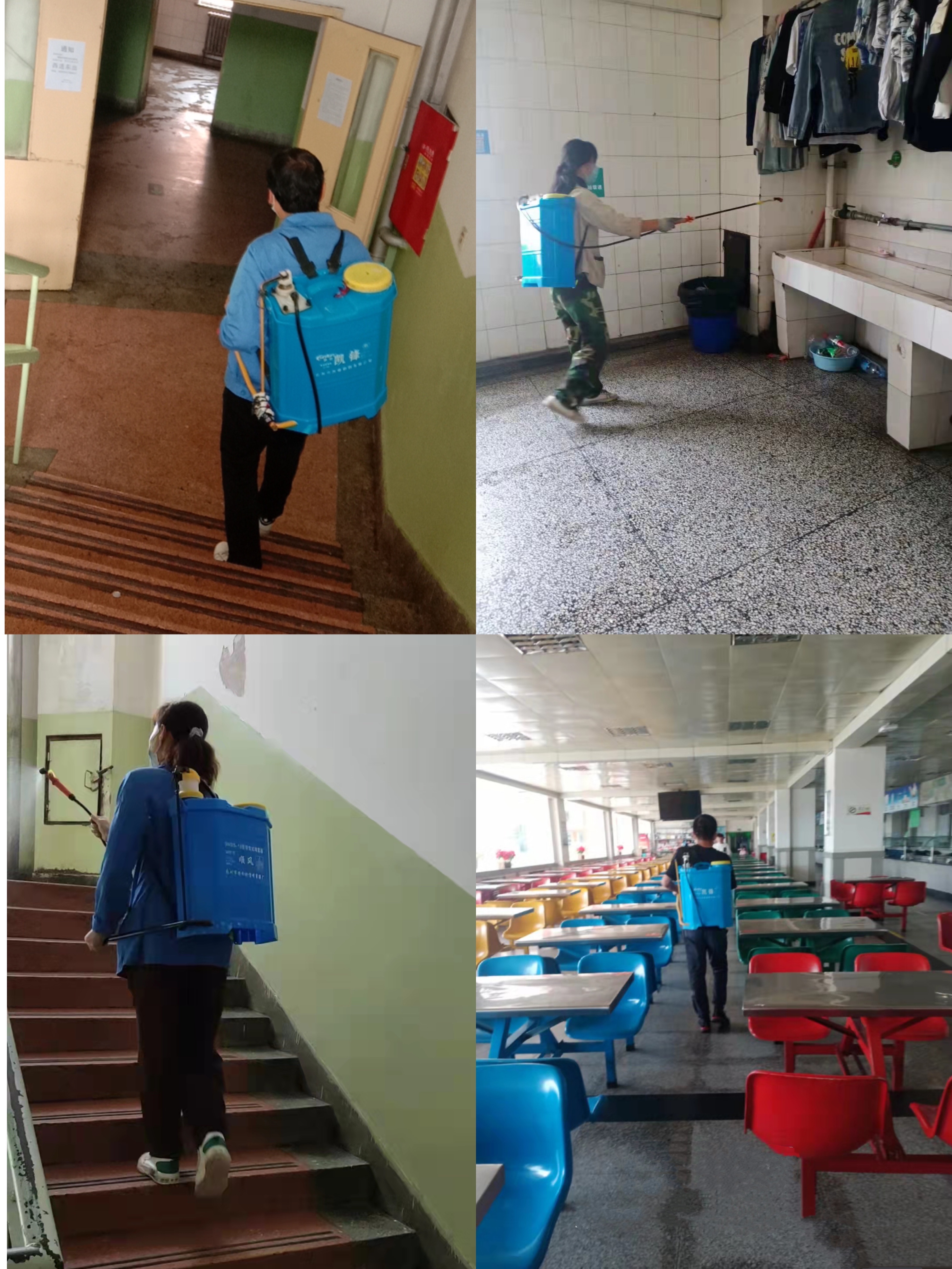 为更加有效地防控疫情,学校家属院设置留观区,每天安排人员进行3次喷雾消毒,并在家属院门口及各楼宇楼道进行一天三次消杀。家属院活动中心安排人员每天进行多次重点喷雾消杀。