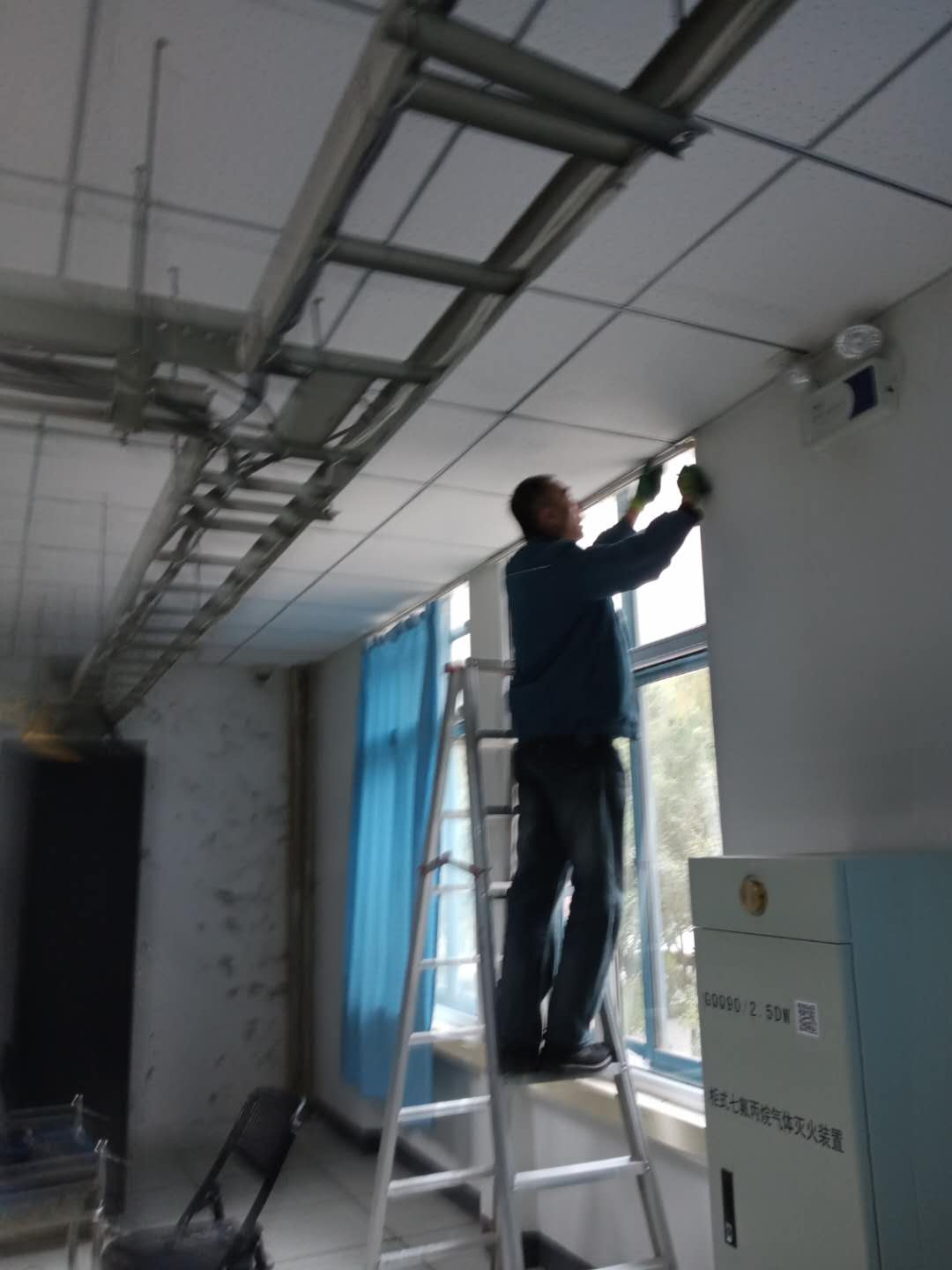 工作人员正在维修实验室窗户